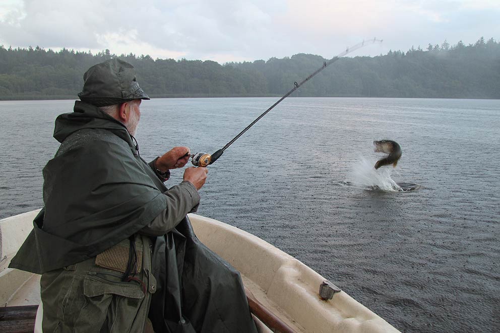 Som det fremgår på billederne herunder, kan fighten være ret dramatisk under geddefiskeriet.