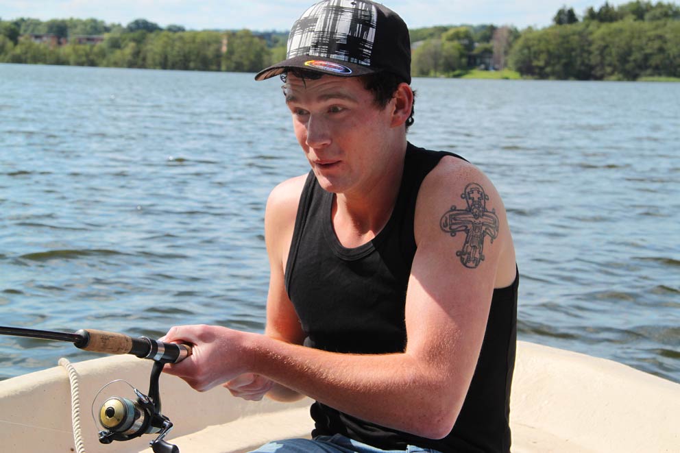 Efter få minutters fiskeri, lød et jubeludbrud fra min søn.