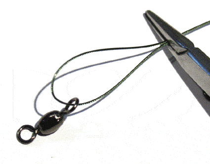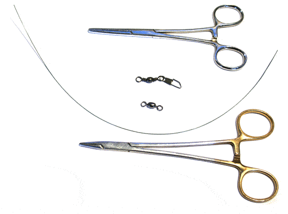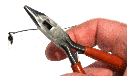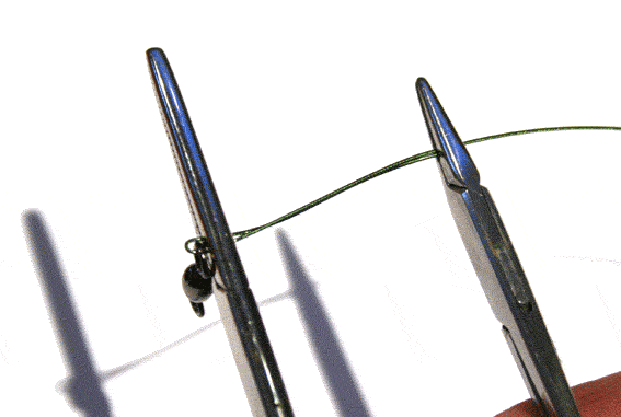Derfor anvender jeg en anden metode som kaldes at "Twiste" wiren. Det betyder i al enkelthed at jeg snor den sammen og det giver en noget mere elegant løsning end med crimps og er lige så stærk. Eneste ulemper ved twist-metoden er at det er nødvendigt med noget værktøj i form af 2 peanér og en lighter, samt at det kræver lidt øvelse. Man kan dog godt klare sig med en enkelt pean, men det er lettest med 2. Desuden skal du bruge en tang til at klippe wiren over med.