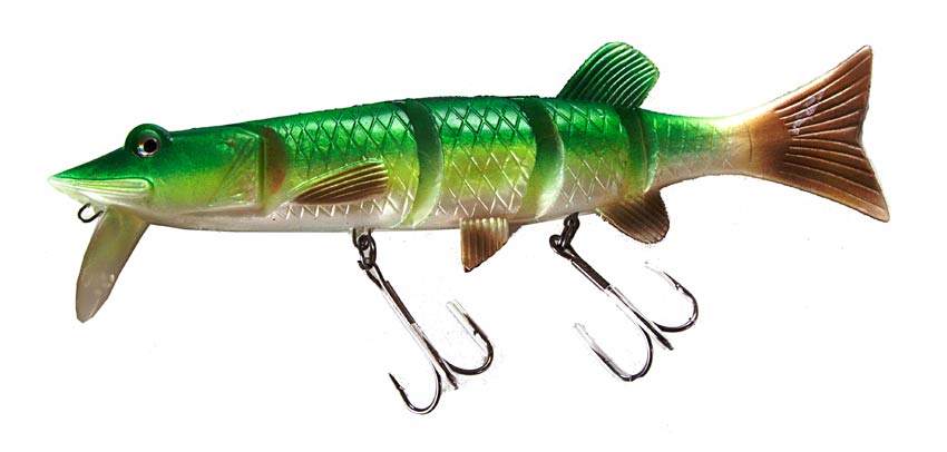 De eksisterer i flere størrelser men er generelt ret store og kræver en solid stang. Også disse woblere er lavet af et stærkt kunststofmateriale. Er gedderne i det rigtige humør, er denne wobler ret velfangende.