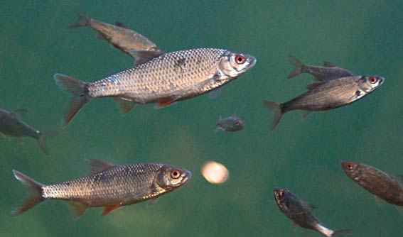 Rudskaller kan også bruges. Rudskaller er smukke bronzeagtige fisk og er ofte lidt større end skaller.