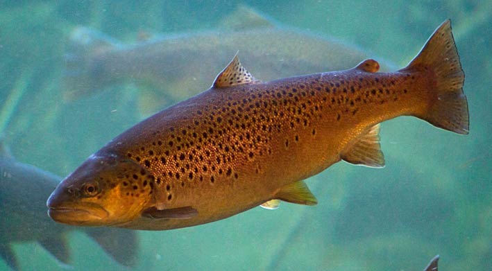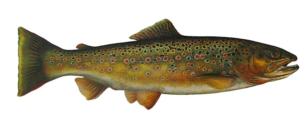 Bækørrederne (Salmo trutta) møder man en sjælden gang imellem i P&T. De er lette at kende med deres store røde pletter og ligner i formen en regnbueørred.