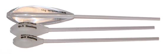 Jeg har set dem i størrelserne 3, 4, 5 og 6 gram, så der er lidt at vælge imellem. De kaster rigtigt godt og er helt gennemsigtige, så de er noget mere diskrete i vandet end Bombardafloddene.