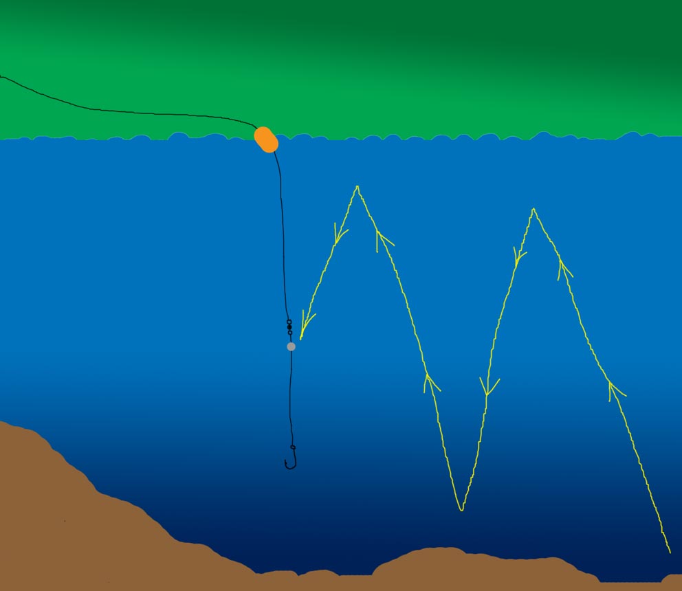 Hvis fiskene er forsigtige og ikke vil hugge, kastes den blot ud og "står op" fra bunden. Det sidste virker især godt om vinteren.