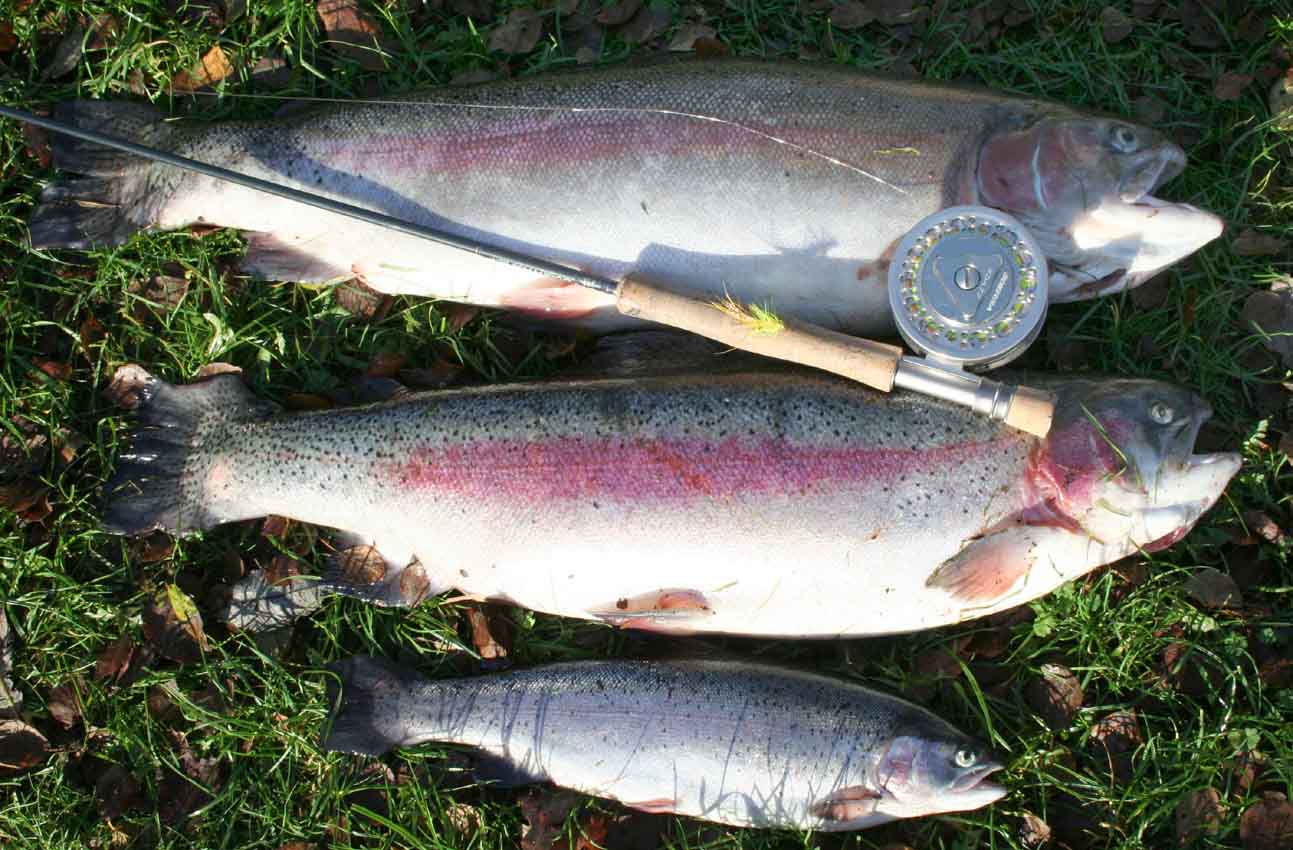 Regnbueørrederne (Salmo gairdneri) er lette at kende med deres farvede stribe langs midterlinien. Der er en meget flot fisk og er nok den stærkeste af ørrederne.