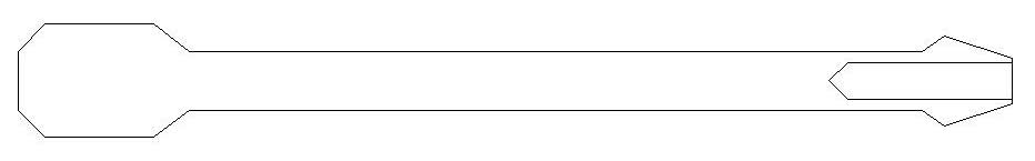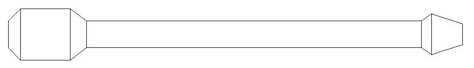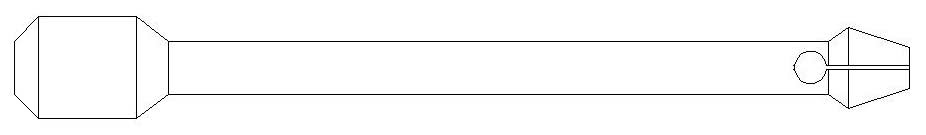 Drej herefter værktøjet i facon så den ligner snittegningen herover. Skaftet er drejet ind til omkring 13 mm og hovedet i den tynde ende er drejet ned til ca. 20 mm og spidset til i omtrent den vinkel som er vist på tegningen her. Den tykke ende er ca. 35 mm lang total, afrundingerne medregnet.