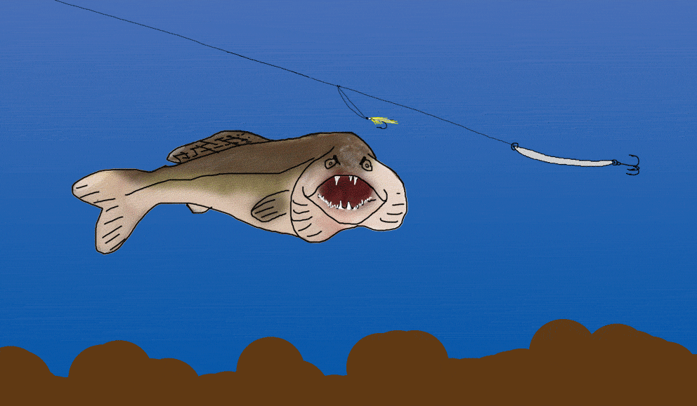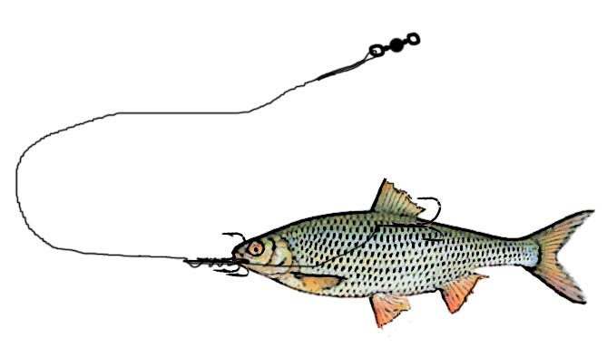 Når der fiskes med naturlig agn er det en fordel at binde et forfang i fluorocarbon med et dobbelt krogsæt, det vil sige med 2 trekroge.