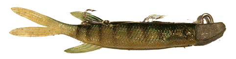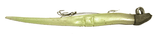 Herunder ses en hjemmelavet variant. Ideen med den, er at man skærer hovedet af agnfisken og erstatter det med riggens hoved på samme måde som beskrevet ovenfor.