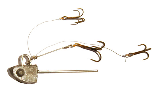 Hvis du endelig ønsker en speciel krog til formålet, så bortslib eller klem modhagen væk på den ene af de tre kroge. Anvend den modhageløse krog til at stikke i jiggen, som bedre kan holde til at krogen stikkes på plads gang efter gang.