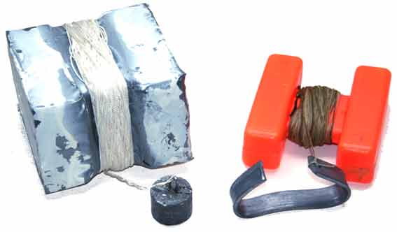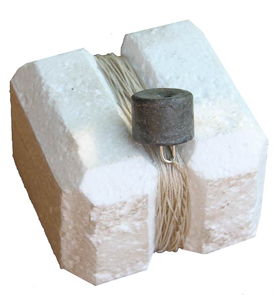 Det er let at lave sådan en markør. Man skærer den blot ud af en flamingoblok, binder en snor på og monterer et lod i enden af snoren.