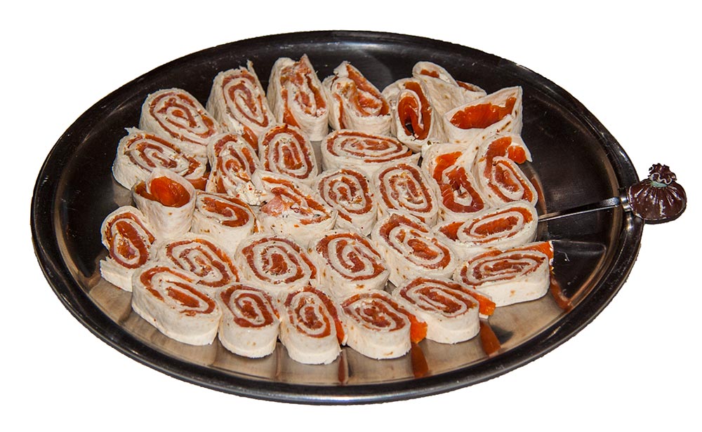 Rul Tortillaen sammen til en roulade og sæt den på køl, til den skal serveres.