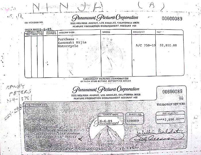 Mr. Chris Dolan har været en uvurderlig hjælp i dette projekt. Han havde tidligere en motorcykelforretning i San Diego, og han var manden som leverede motorcyklerne til filmen i 1985. Chris mailede mig nogle af sine private billeder af motorcyklerne. Han leverede også en masse kendskab om motorcyklerne og besvarede en hel masse spørgsmål. Ud over det begravede Chris endelig en gammel diskussion: Motorcyklen i filmen er selvfølgelig en 900 ccm - Ikke en 750...